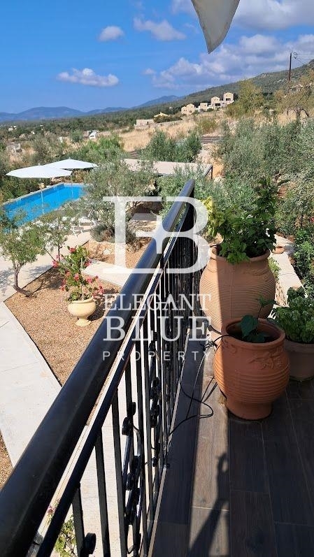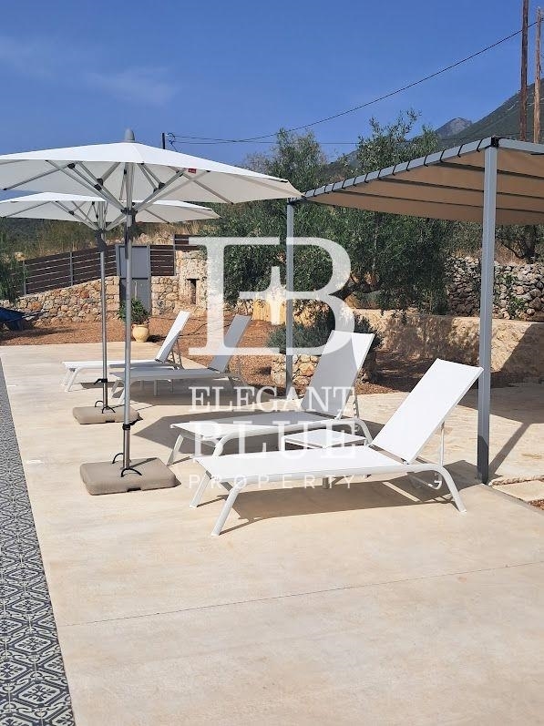 Lefktro-Kardamyli, Stoupa, Detached house For Sale, 150 sq.m., In Plot 2000 sqm,Unique detached house on the outskirts of Taygetos, in the village of Neochori. Situated in a privileged location, the house offers panoramic views of the Messinian Gulf and the Taygetos mountain range. It is located just 3 km from the picturesque village of Stoupa and 55 km from Kalamata International Airport which hosts flights from most European countries and other international cities. The main house, with a total surface of 126 square meters, consists of an open plan kitchen/living room, 2 bedrooms and 2 bathrooms, while in the hallway the current owners have installed a closet-laundry room.In the southwest area of the property, outside the living room and kitchen, there is a spacious balcony where you will surely enjoy every moment of the day, from the morning coffee to the evening wine while watching the sunset.The house is set on a plot of approximately 1000 square meters, with an abundance of biologically maintained olive trees, 19 in total, which will offer you excellent quality olive oil.The big trump card of the property is its private swimming pool with a total surface of 51 square meters. The equipment of the house with furniture and electrical appliances is negotiable. A home that is definitely worth a visit.You can take out equipment and furniture if you need to Price: 650.000€. ELEGANT BLUE PROPERTY, M: +30 6987599959, email: info@elegantblue.gr, website: www.elegantblue.gr
